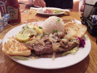 一見良さげなステーキも、ソースは市販のヤツだわ米はパサパサだわ